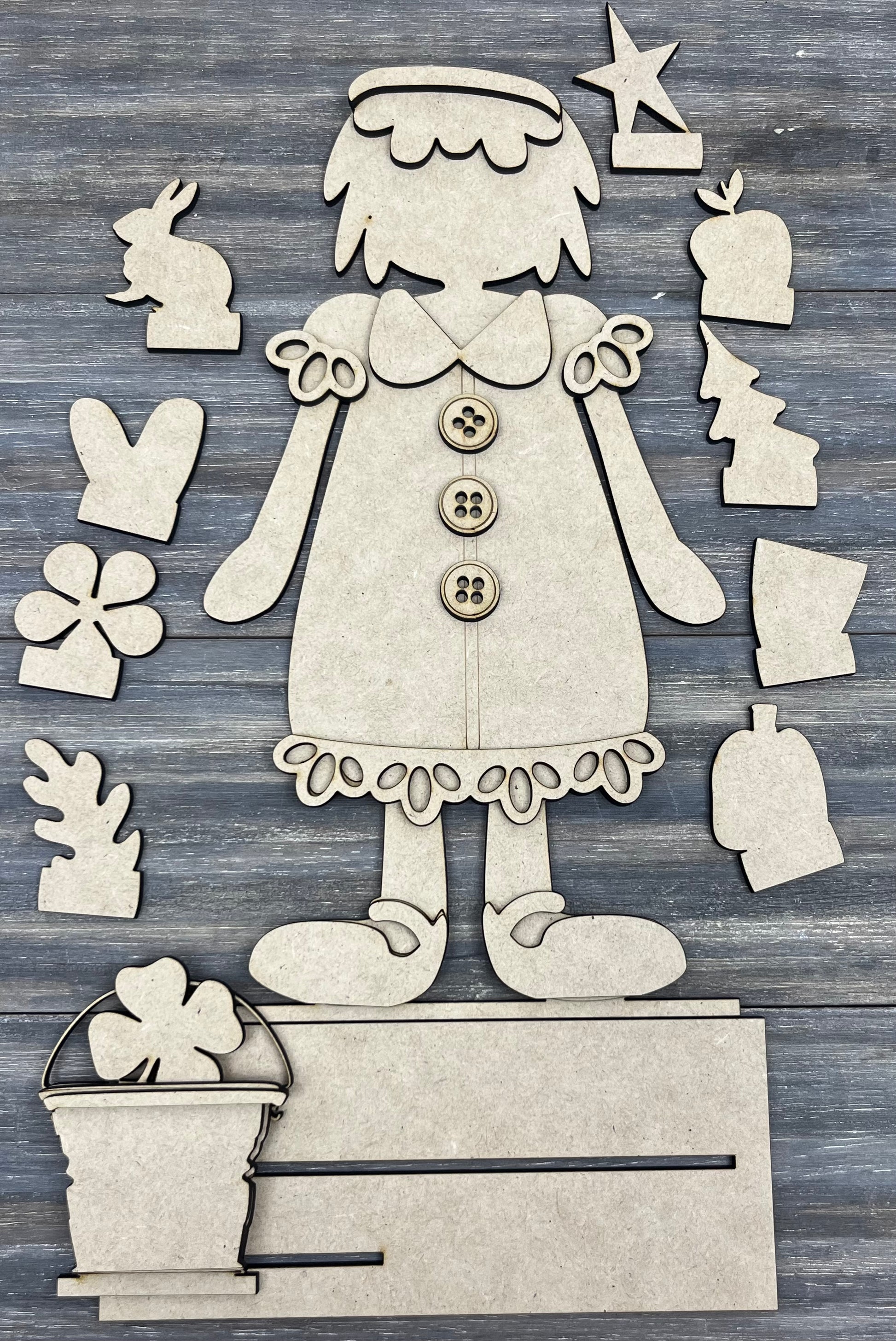 Primitive Girl Doll Interchangeable Shelf Sitter